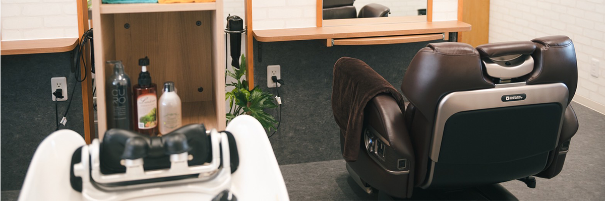 車椅子でも通れる広い通路、多機能トイレ、座ったままのシャンプーやカットの施術が受けられるフットレスト付きのカット席。一般の方はもちろん、ご年配の方、体がご不自由な方、妊婦さんも広々とした空間の中、ストレスフリーで施術が受けられます。