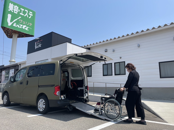 ヴェリテは介護士が在籍しています。ご来店に困難な方は車椅子対応の福祉車両で送迎可能、乗降のサポートも致しますので安心してご来店いただけます。お気軽にお問い合わせください。